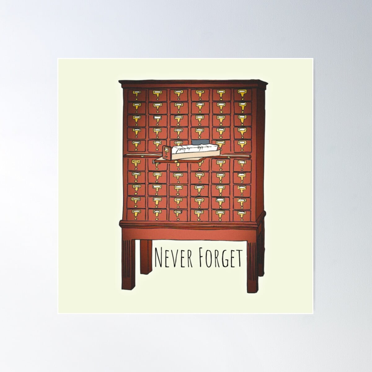Never Card Catalog Nostalgic Illustration Poster Wall Art
