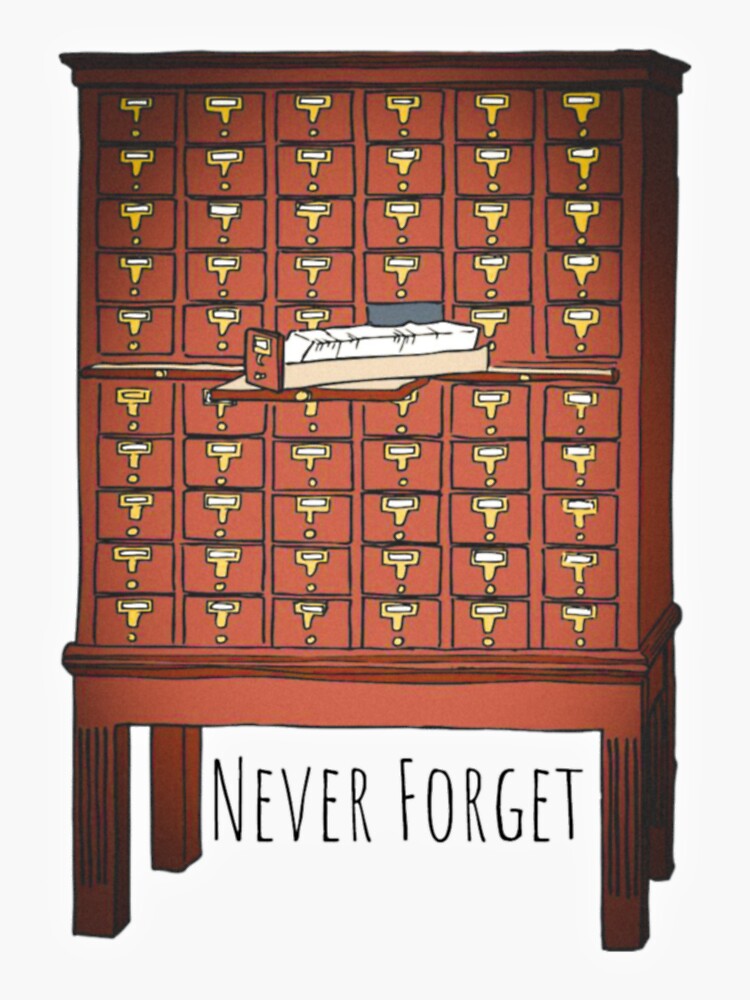 "Never Card Catalog Nostalgic Illustration" Sticker for Sale by