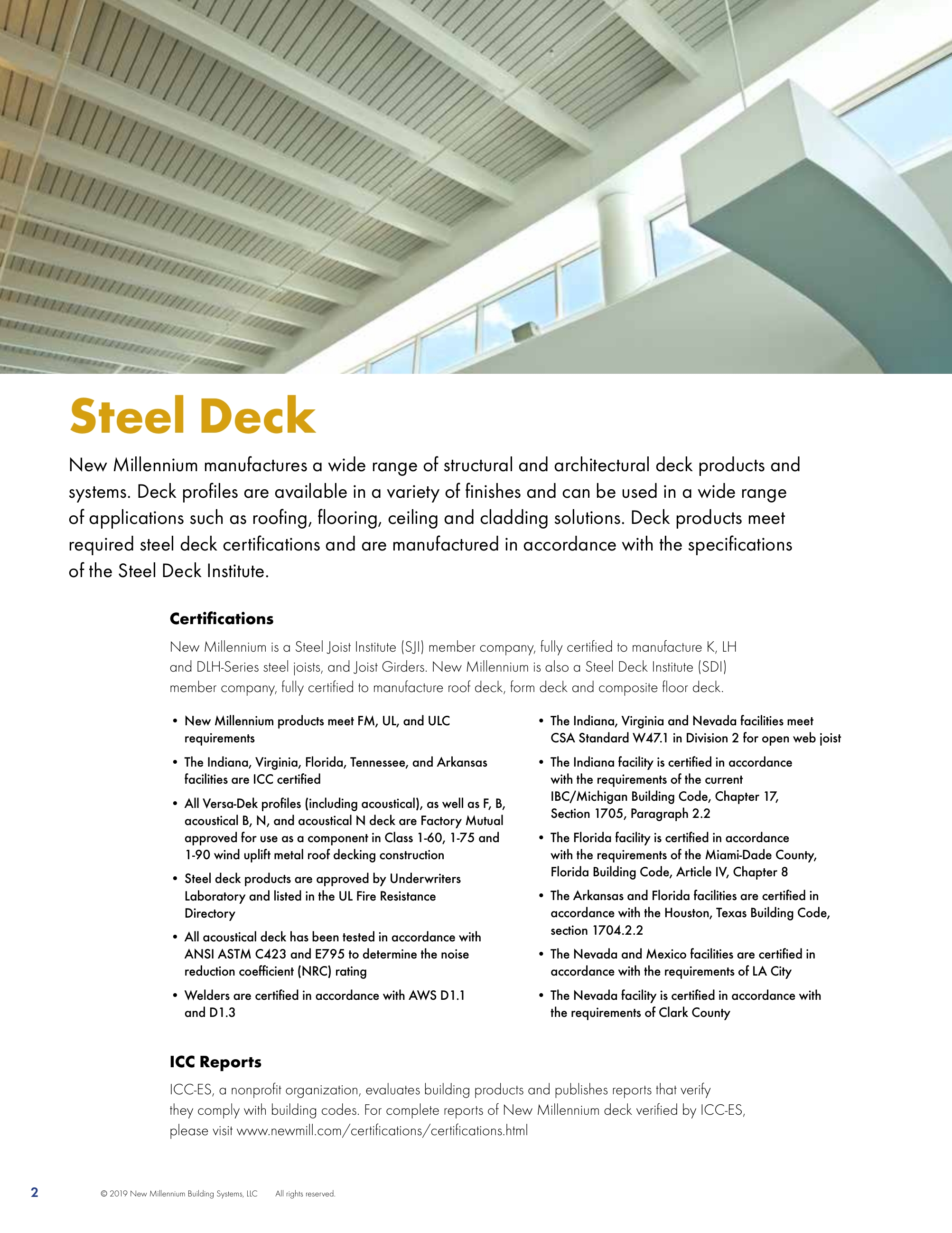 New Millennium Building Systems, Catalogs, Steel Deck 2019 ARCAT