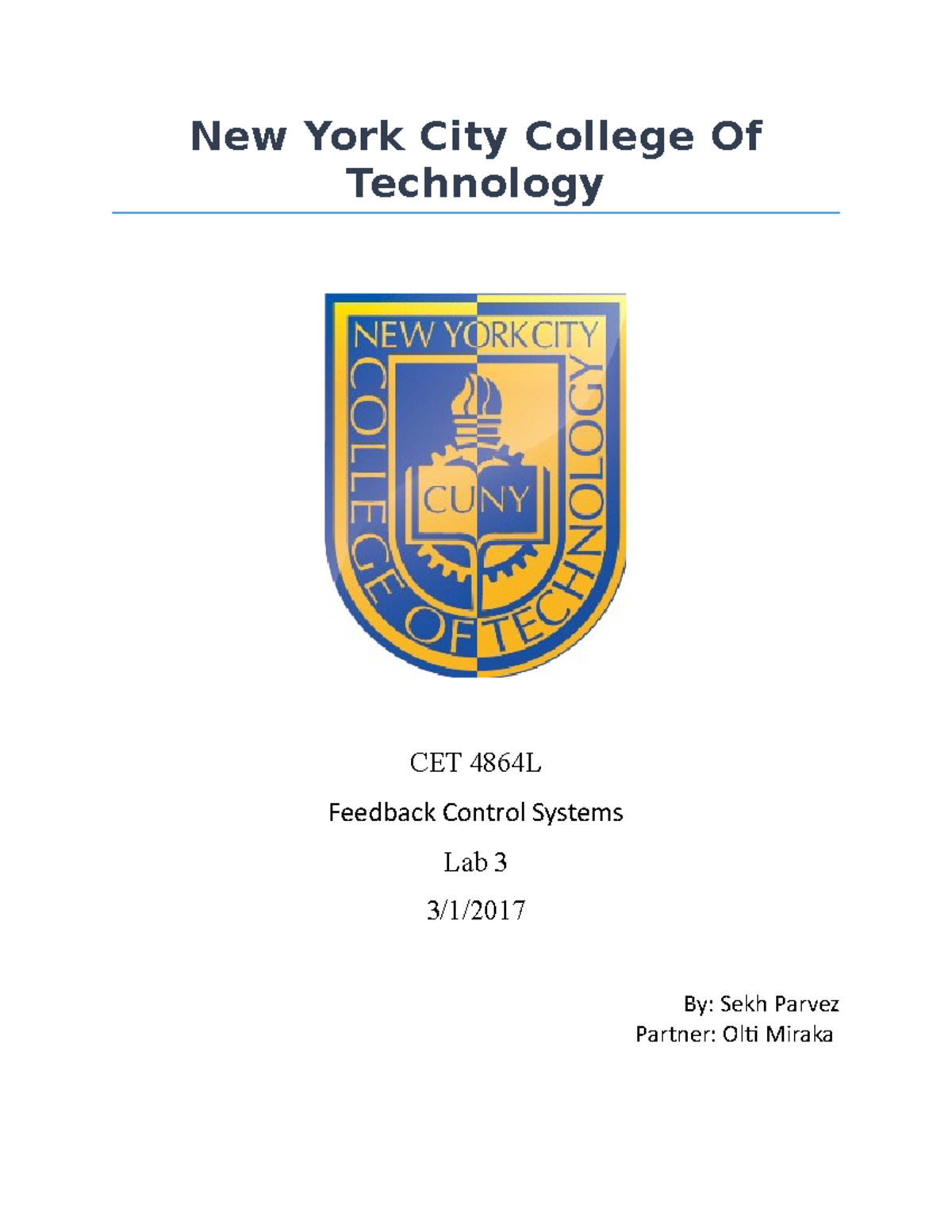 LAB 3 Lab 3 New York City College Of Technology CET 4864L Feedback