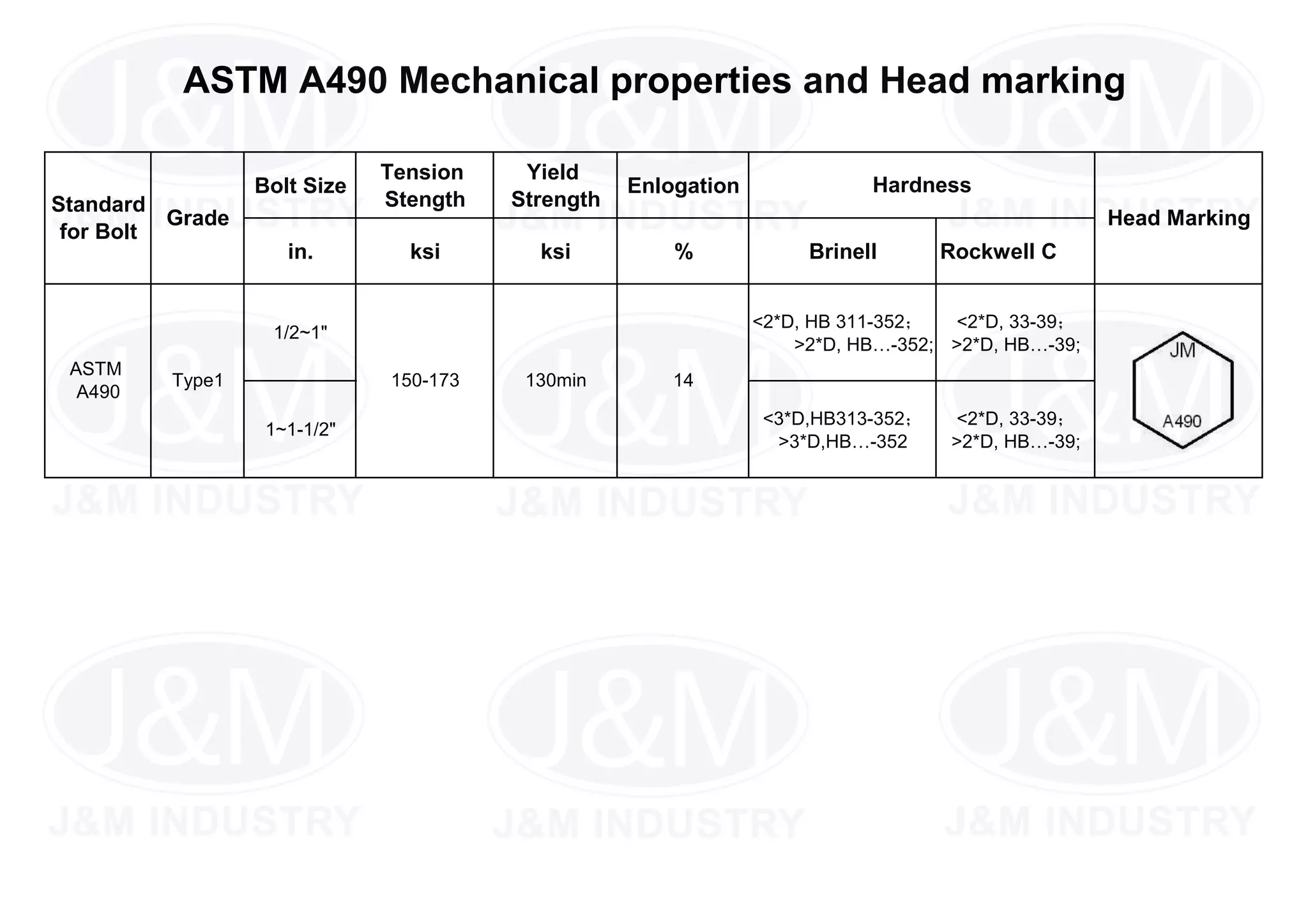 ASTM A490 bolts specifications, equivalent grade, torque & dimensions