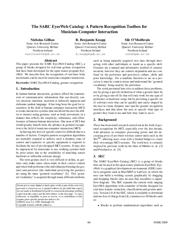 (PDF) The {Sar}C Eyesweb Catalog A Pattern Recognition Toolbox For