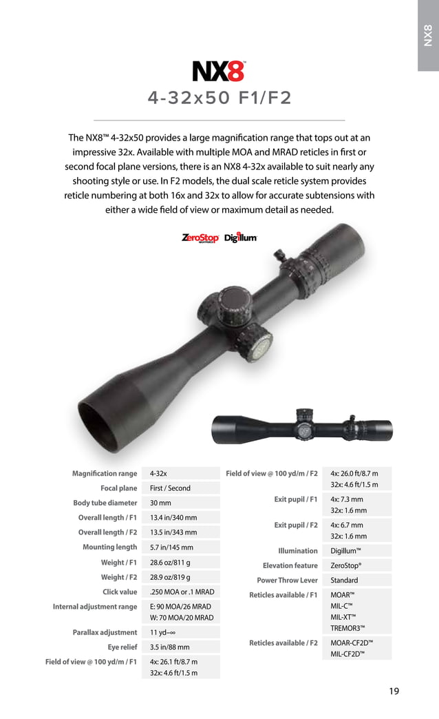 Specifications Sheet Nightforce NX8 Optics Trade PDF Arms