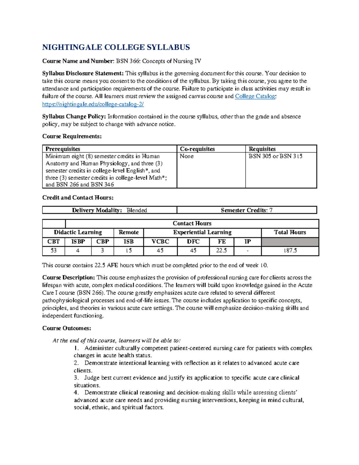 BSN366242 Course syllabus NIGHTINGALE COLLEGE SYLLABUS Course Name