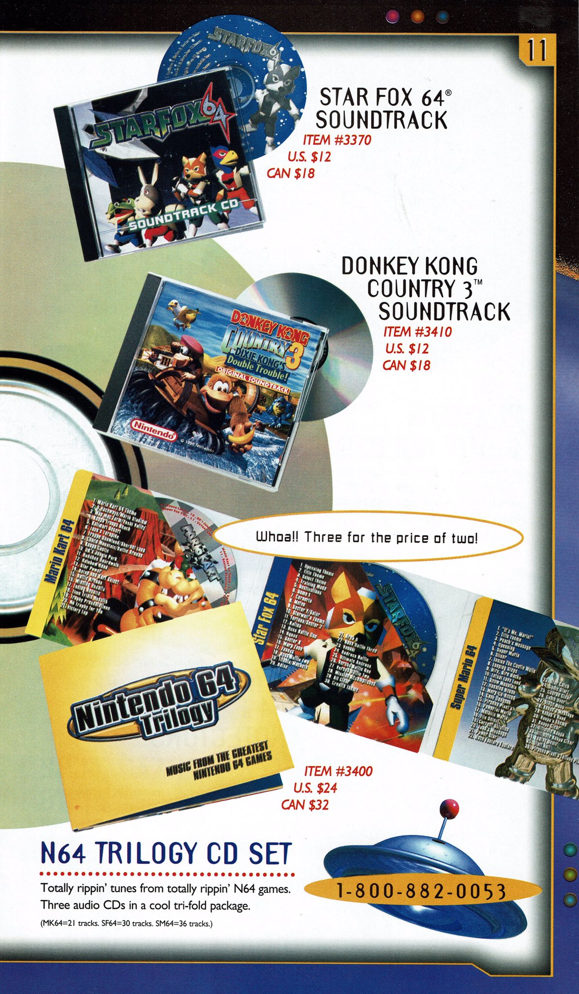 Soundtrack listings from a 1998 Nintendo Power Super Power Supplies