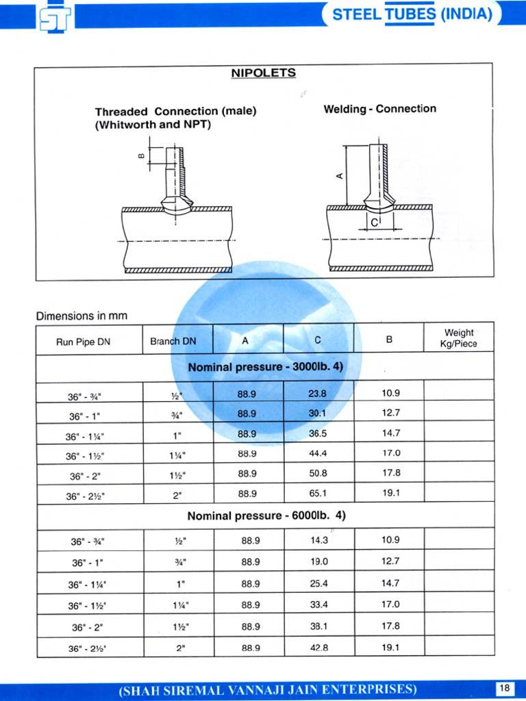 Nipolet's Dimensions (SCH 160/SCH XXS) Pipelines, Piping, 52 OFF
