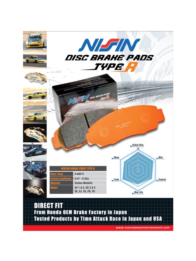 Nissin Type R Racing Brake Pads FRONT 0009 Honda S2000 AP1 AP2 Acura