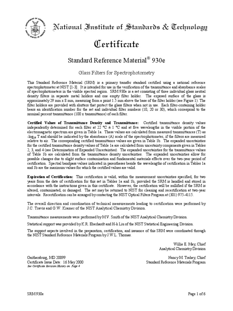 NistSrm 930e PDF Spectrophotometry Optical Filter