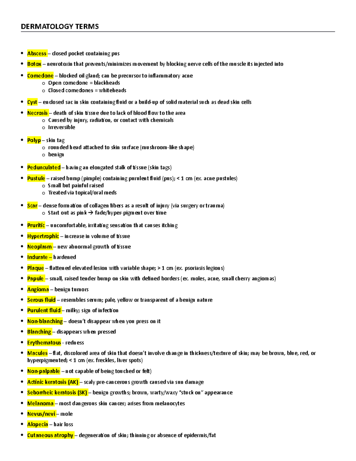 Dermatology Abbreviations Essential Outline for Quick Reference Studocu