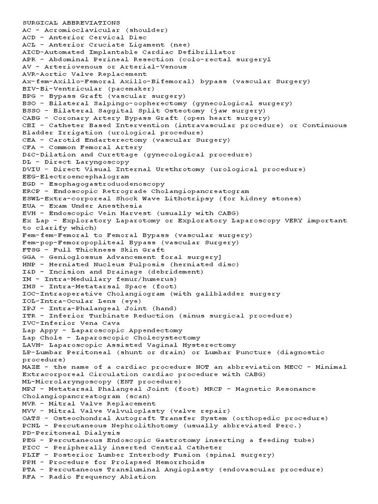 Surgical Abbreviations PDF Coronary Artery Bypass Surgery Medical