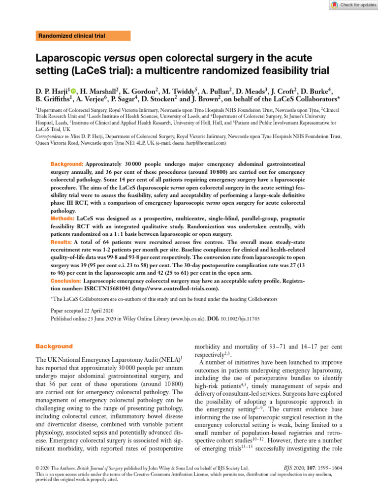 British Journal of Surgery 2020 Harji Laparoscopic Versus Open