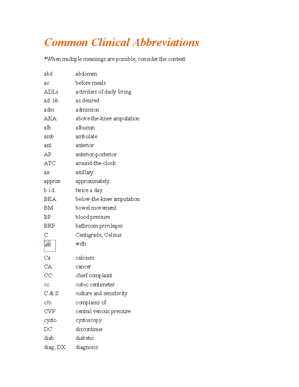 Common Clinical Abbreviations2 Common Clinical Abbreviations *When