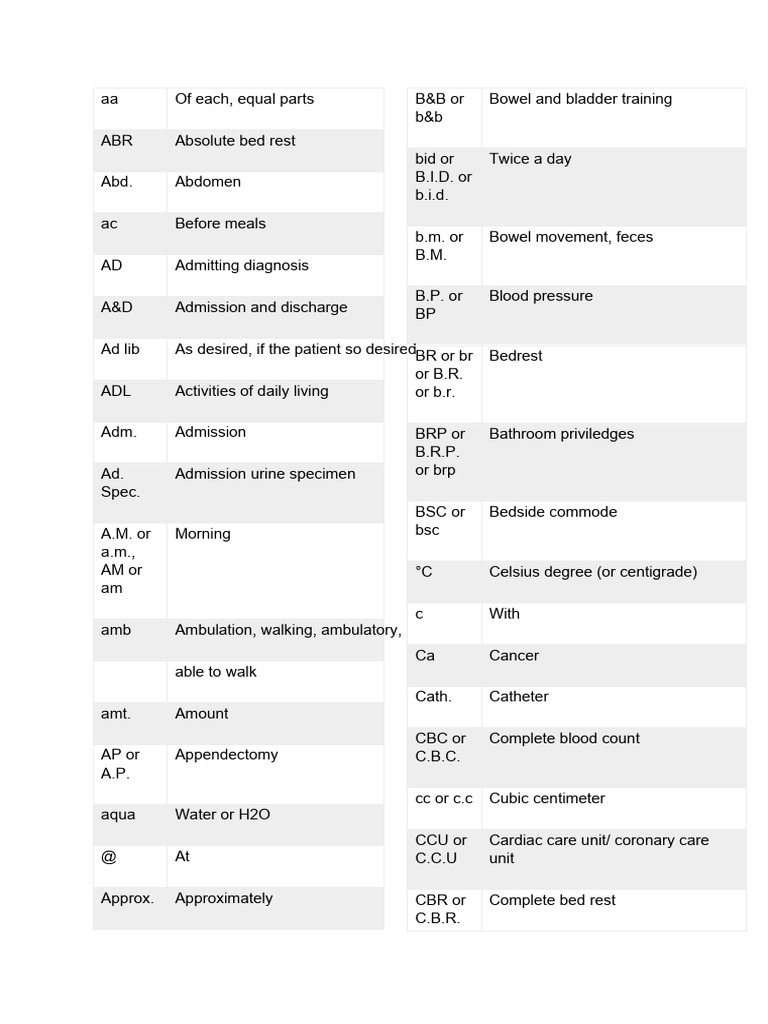 List of Nursing Abbreviations and Acronyms 1 PDF Medicine