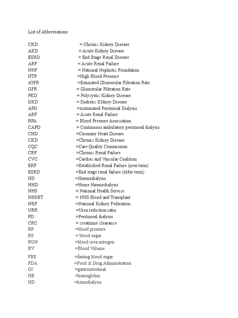 List of Abbreviations PDF Chronic Kidney Disease Internal Medicine