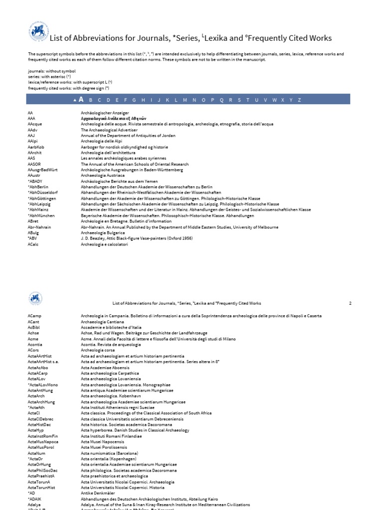 List of abbreviations for journals Download Scientific Diagram