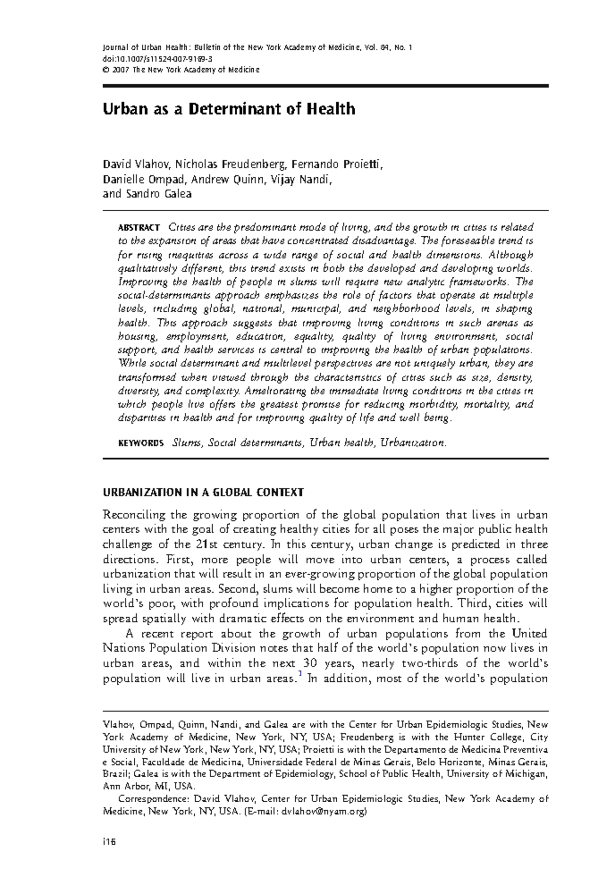 Tema 2 Lectura 2 Urban AS Determinant OF Health Journal of Urban