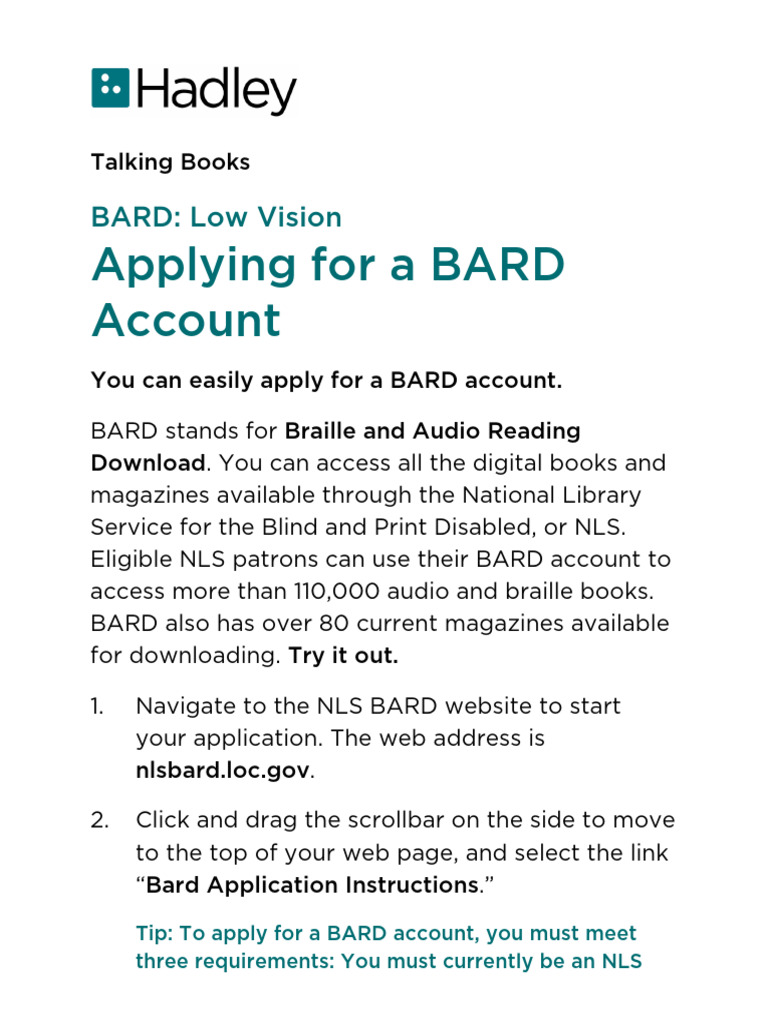 QSG Applying For A BARD Account (Low Vision) PDF Visual Impairment