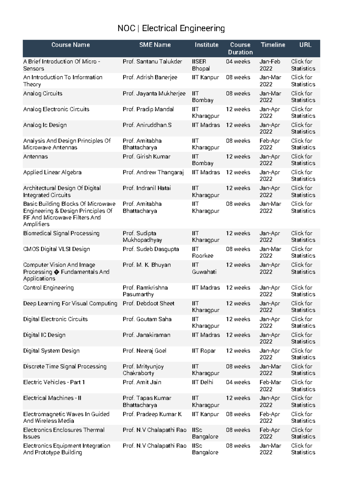 NOC Electrical Engineering NOC Electrical Engineering Course Name