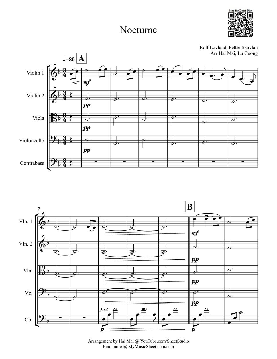 Secret Garden Nocturne(Secret Garden) for String Quintet Sheets by