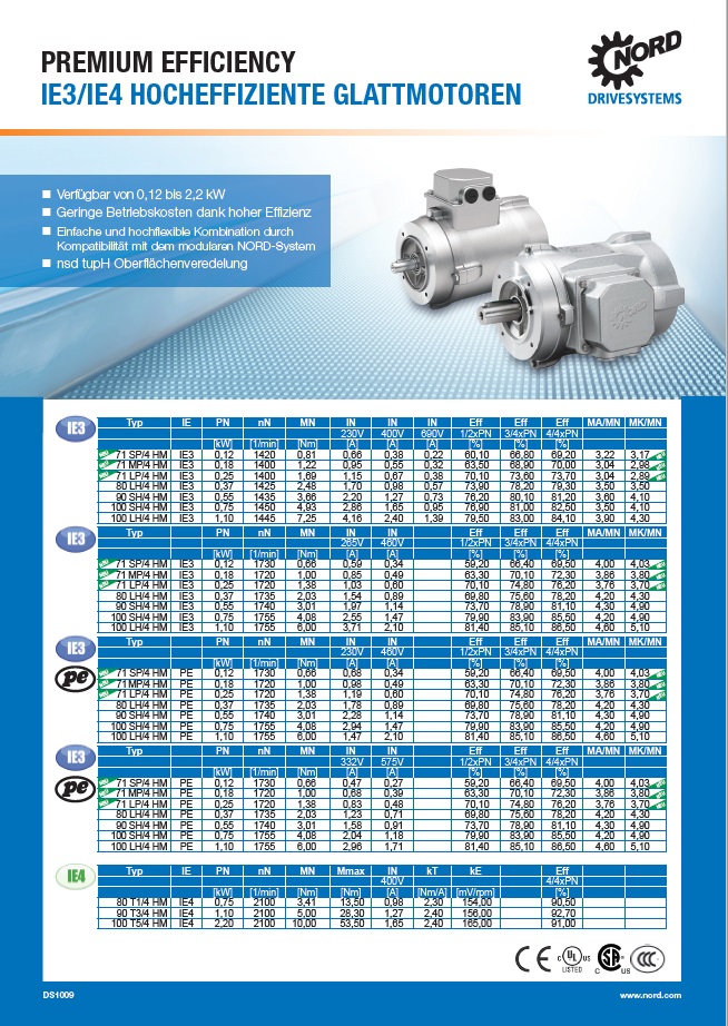 IE3/IE4 High Performance Smooth Motors(DS1009) NORD