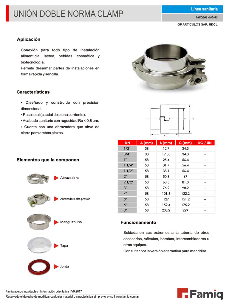 Unión doble norma clamp descripción y especificaciones de uniones para