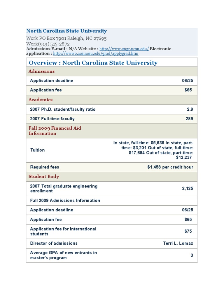 North Carolina State University Graduate School University And