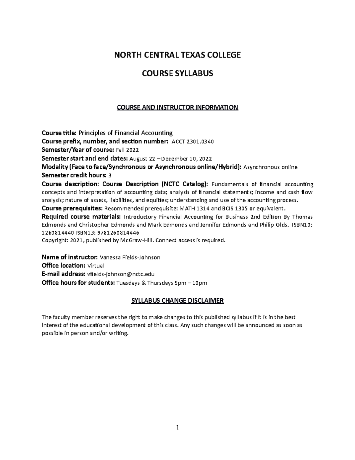 Fall 2022 Syllabus Lab NORTH CENTRAL TEXAS COLLEGE COURSE SYLLABUS