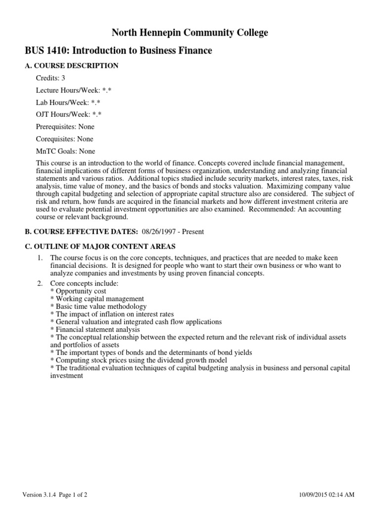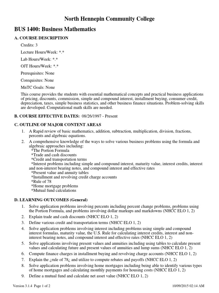 North Hennepin Community College BUS 1400 Business Mathematics PDF