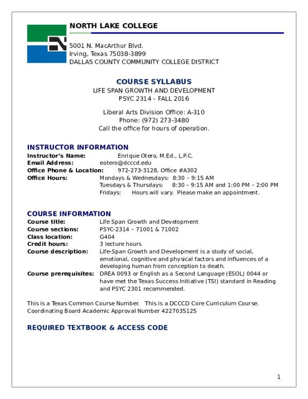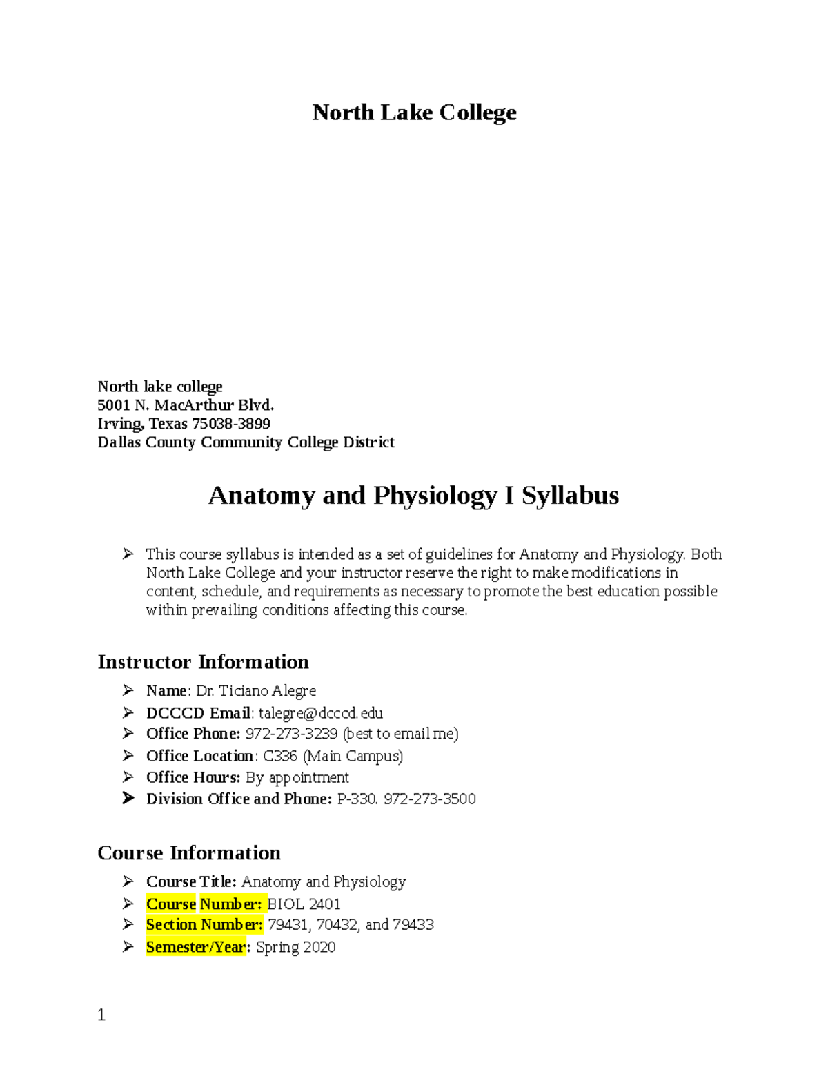 BIOL Syllabus 2401 Spring 2020 Accessible Syllabus 5 North Lake