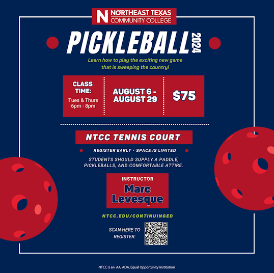 Pickleball class starts August 6th Northeast Texas Community College