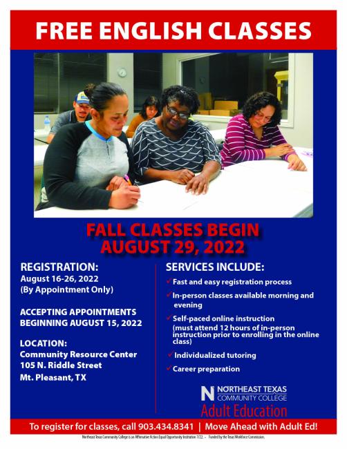Adult Ed offers free GED, ESL classes Northeast Texas Community College