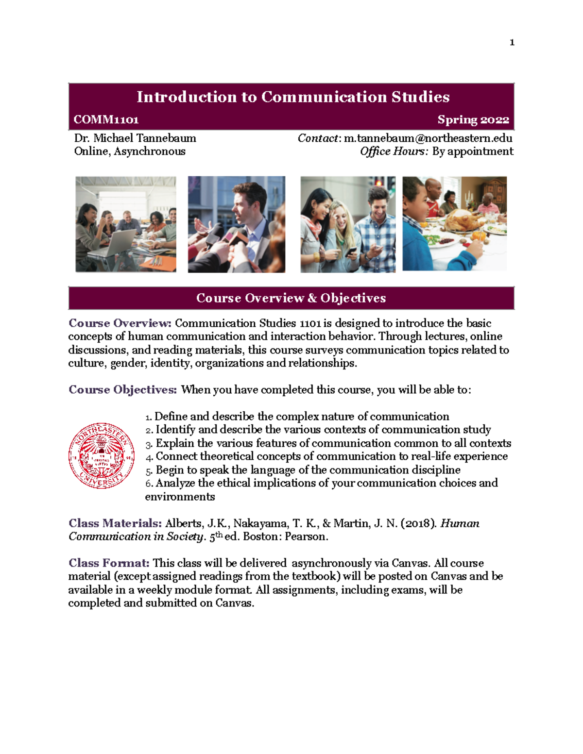 COMM 1101 Syllabus Professor Michael Tannebaum Dr. Michael