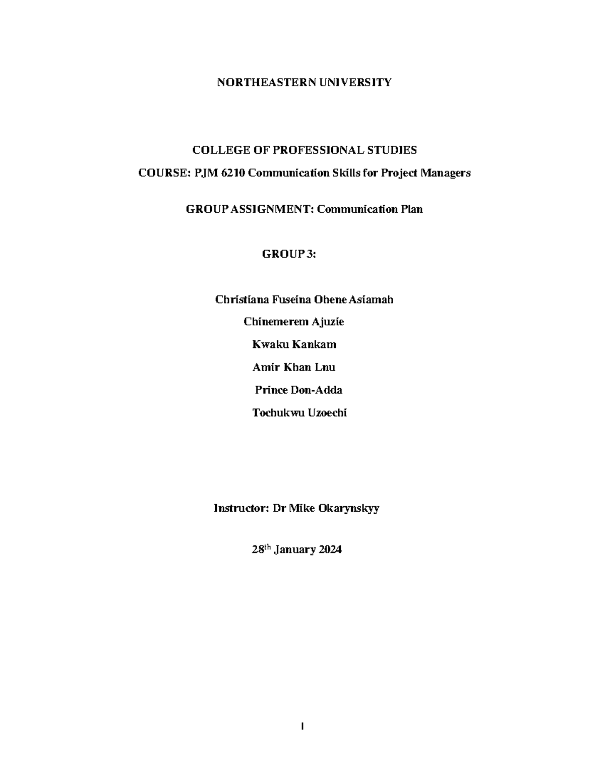 Communication Plan Group Assignment PJM 6210 NORTHEASTERN UNIVERSITY