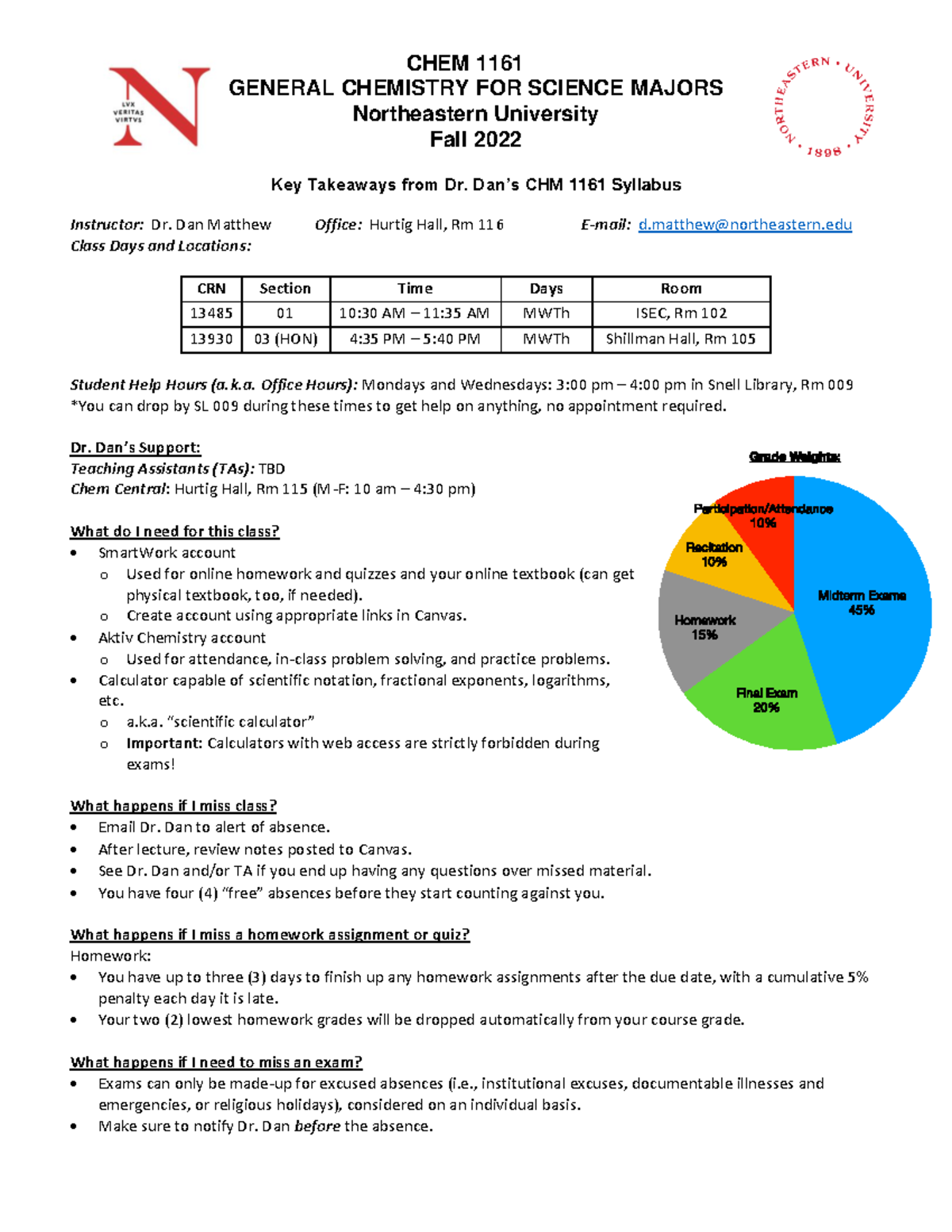 CHEM1161F22One Page Syllabus CHEM 1161 GENERAL CHEMISTRY FOR