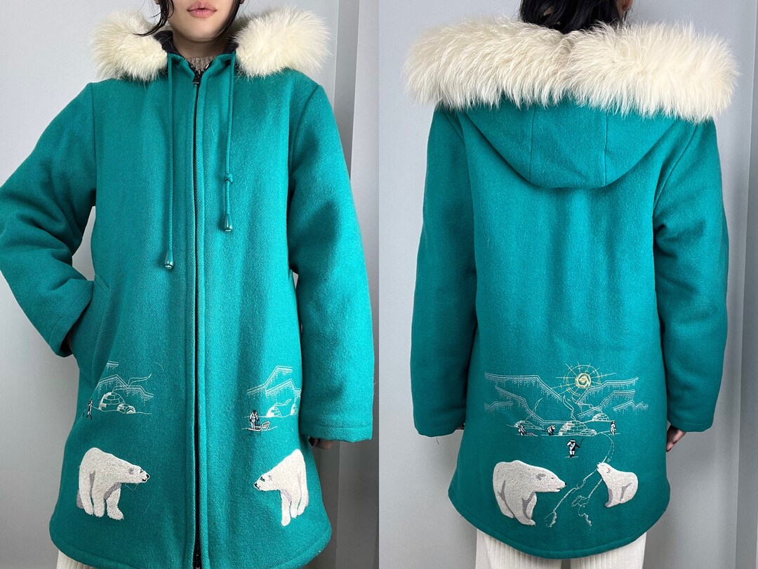 Vintage Northern Sun Inuit Wool Coat Fox Fur Hood, Insulated