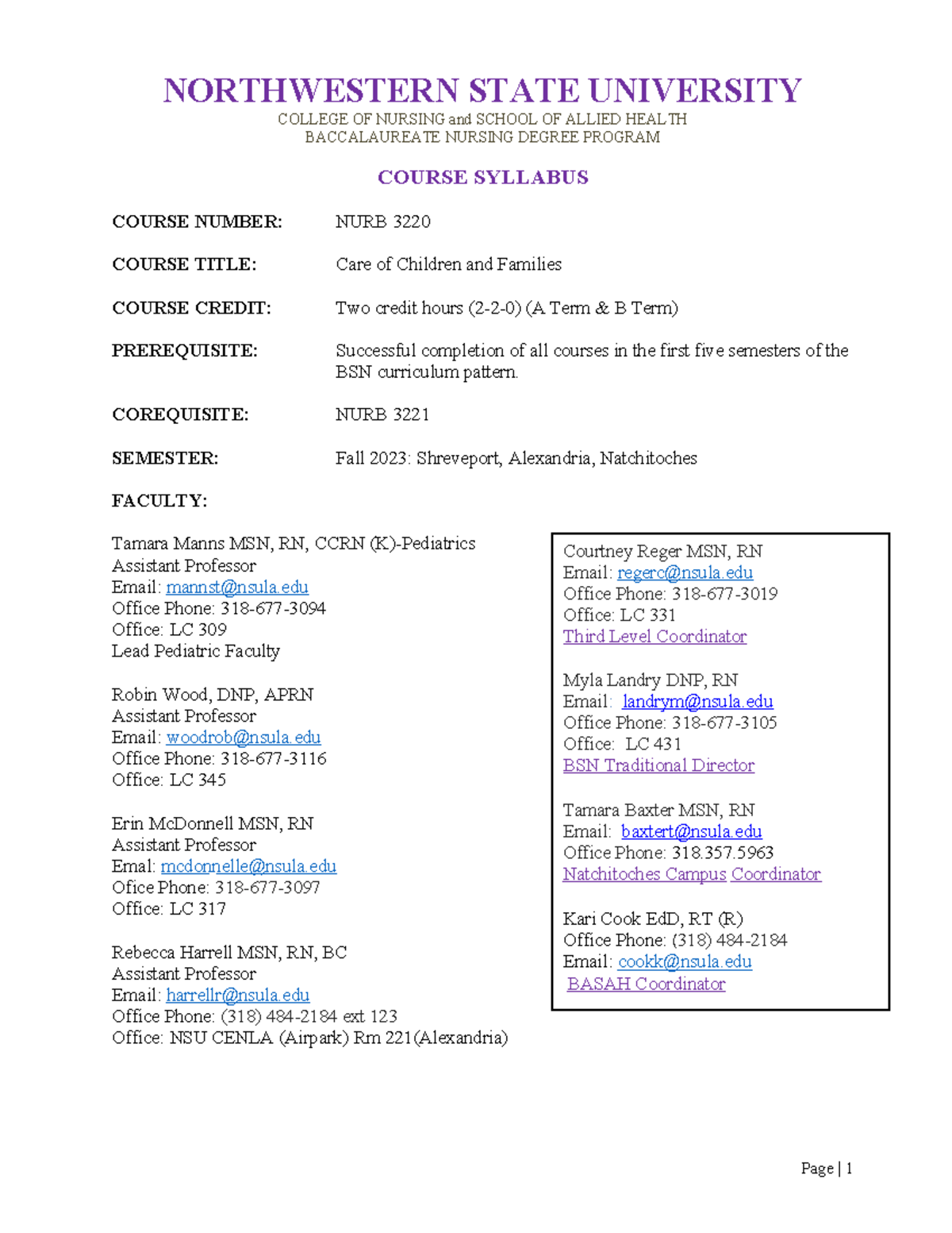 Fall 2023 Syllabus 3220 B Term NORTHWESTERN STATE UNIVERSITY COLLEGE