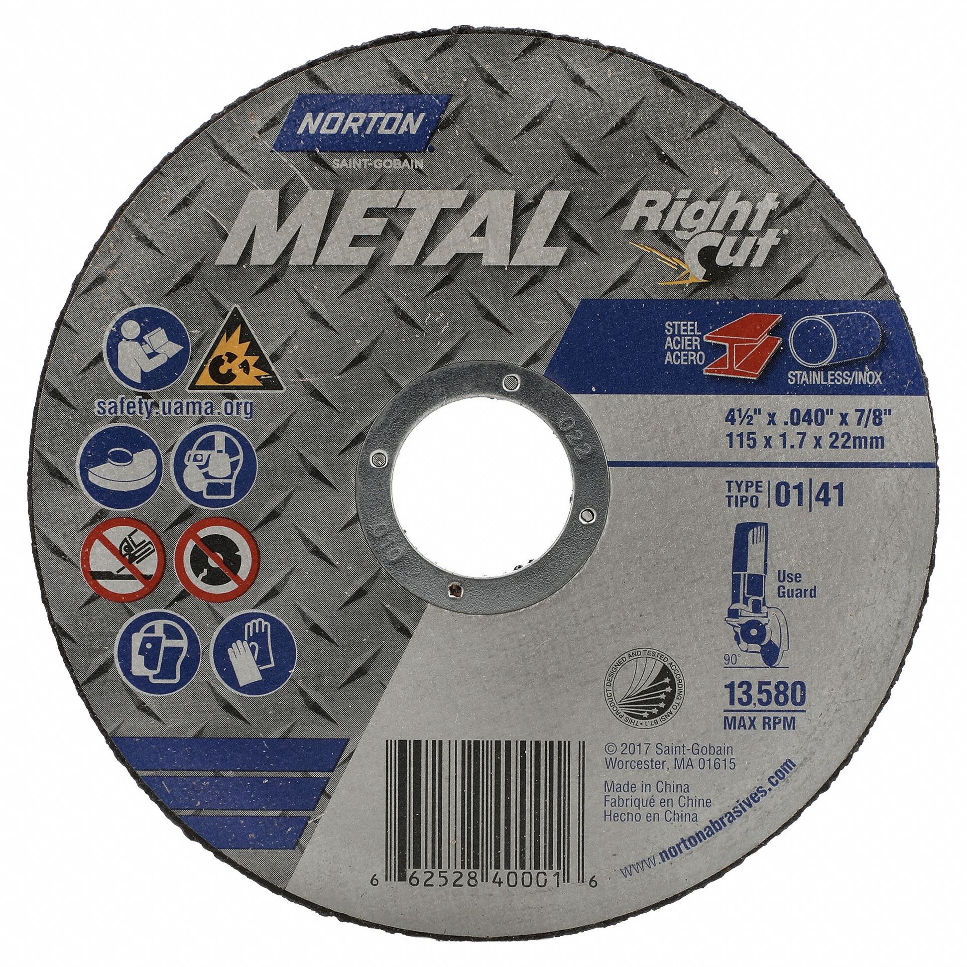 NORTON, Type 1, 4 1/2" x 0.045" x 7/8", CutOff Wheel 808CR2