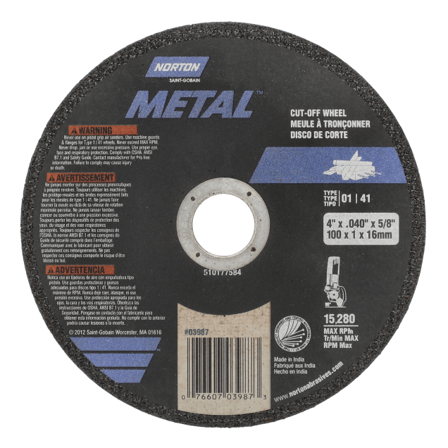 Norton Metal A AO Type 01/41 High Speed CutOff Wheel Norton