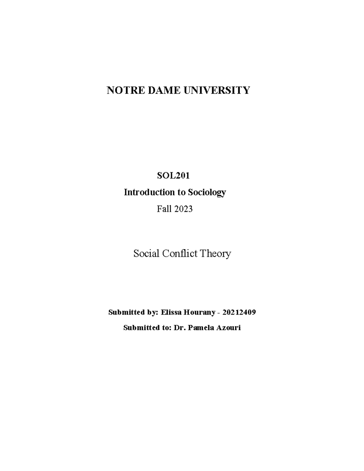 social conflict theory NOTRE DAME UNIVERSITY SOL Introduction to