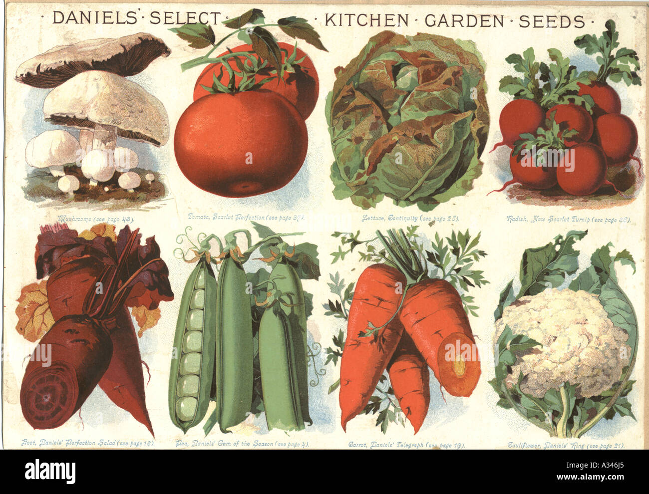 Vegetable seeds in Daniels Bros Norwich catalogue circa 1890 Stock