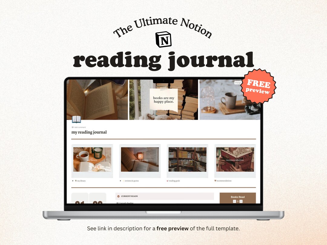 Ultimate Notion Reading Journal Template, Book Tracker Digital Planner