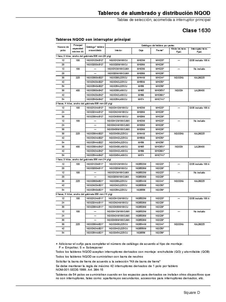 Tableros Nqod Square D PDF Electrical Engineering Manufactured Goods