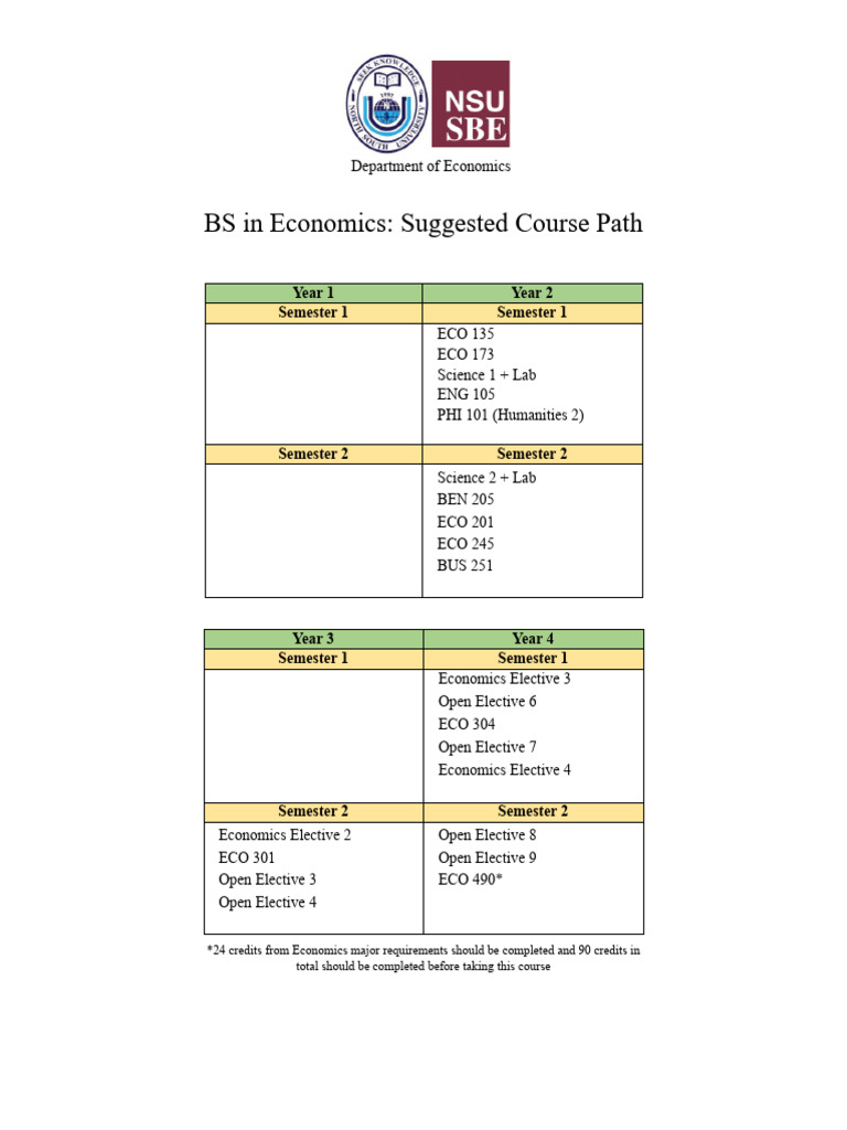 NSU Updated Economics Course Map PDF Applied Mathematics Science