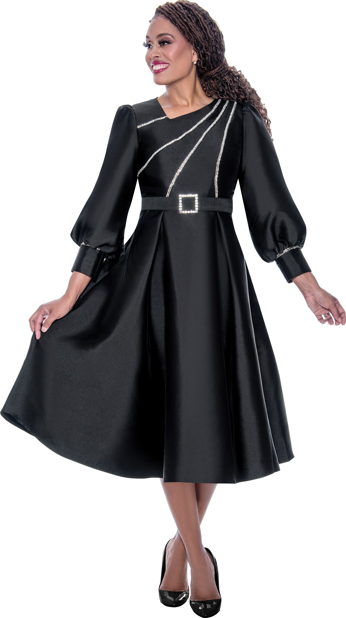 Dresses By Nubiano 100081 Belted Crystal Twill Dress Dresses By Nubian