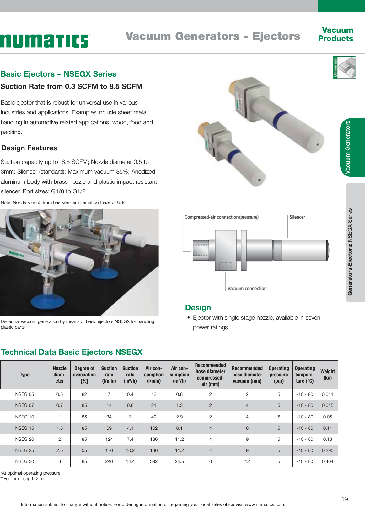 Flow Numatics Basic Ejectors 1505494267 Vacuum Products Catalog User Manual