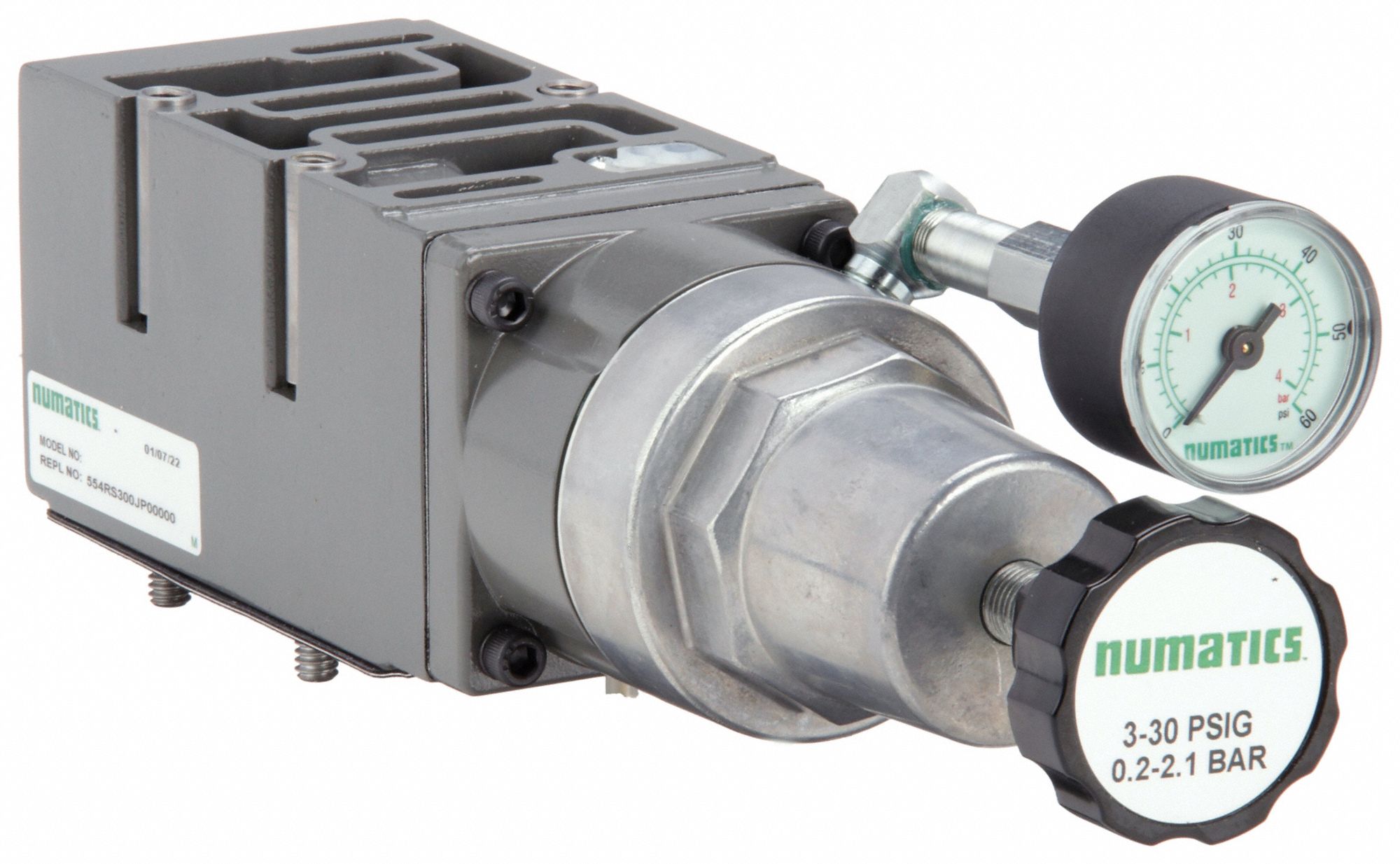 NUMATICS, 230 cfm Max Flow Rate, 3 psi to 30 psi, Sandwich Single Air