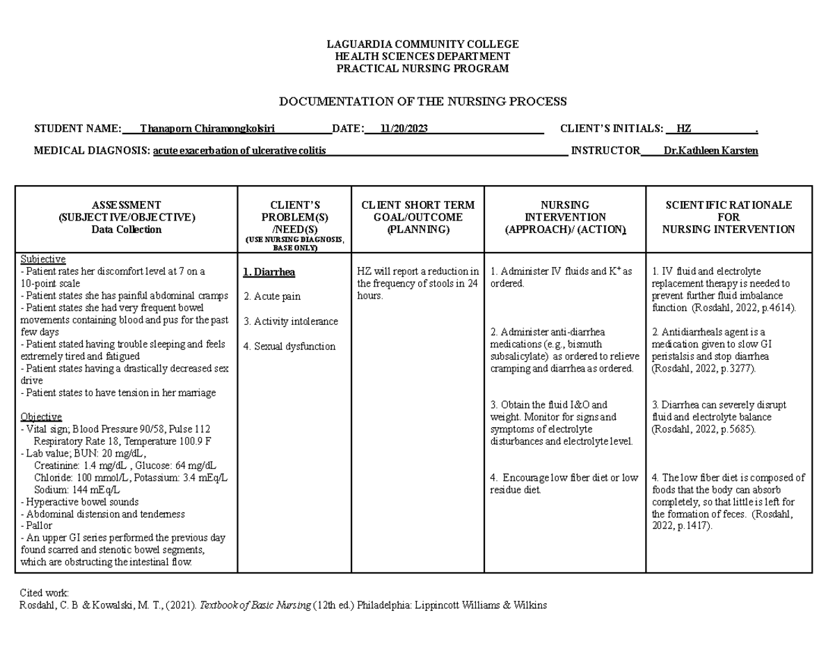 Care Plan Fall2023 LAGUARDIA COMMUNITY COLLEGE HEALTH SCIENCES