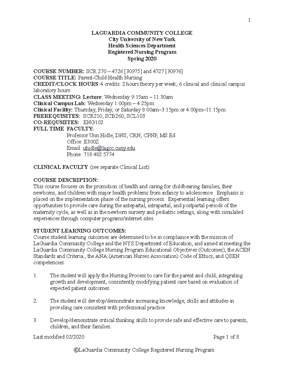 SCR270Syllabus 292020 LAGUARDIA COMMUNITY COLLEGE City University