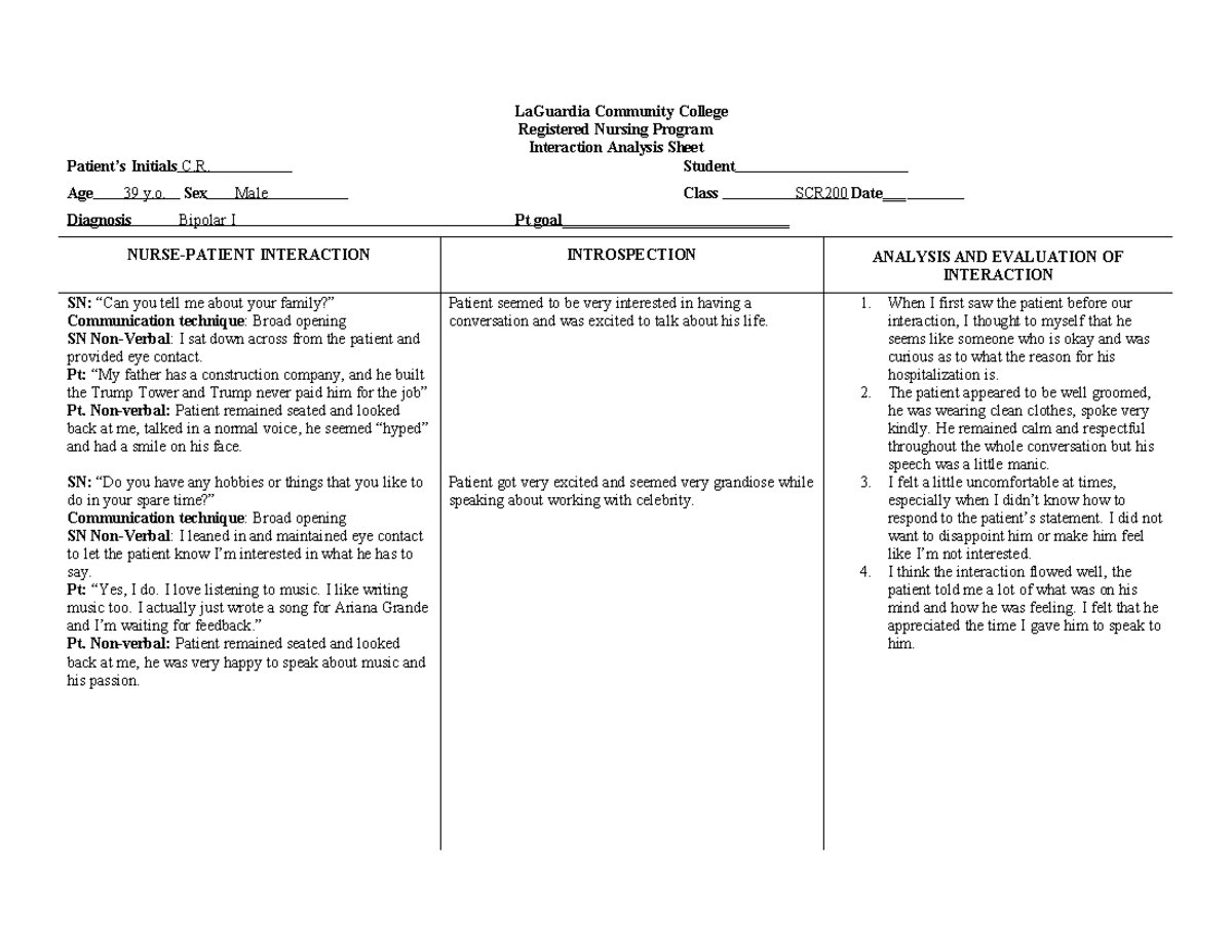 Interaction Analysis LaGuardia Community College Registered Nursing