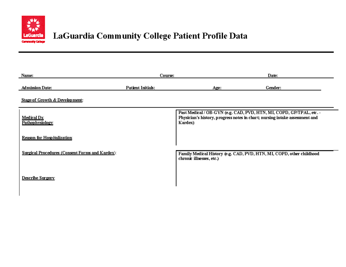 New Concept Map LaGuardia Community College Patient Profile Data Name